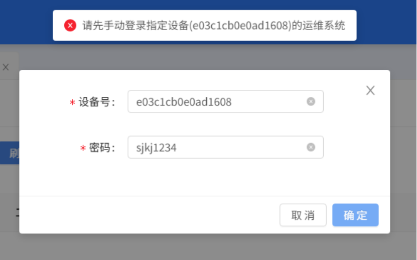 (4).若提示如下信息,则需要在中控平台先登录到设备的运维后台,类似激活一下