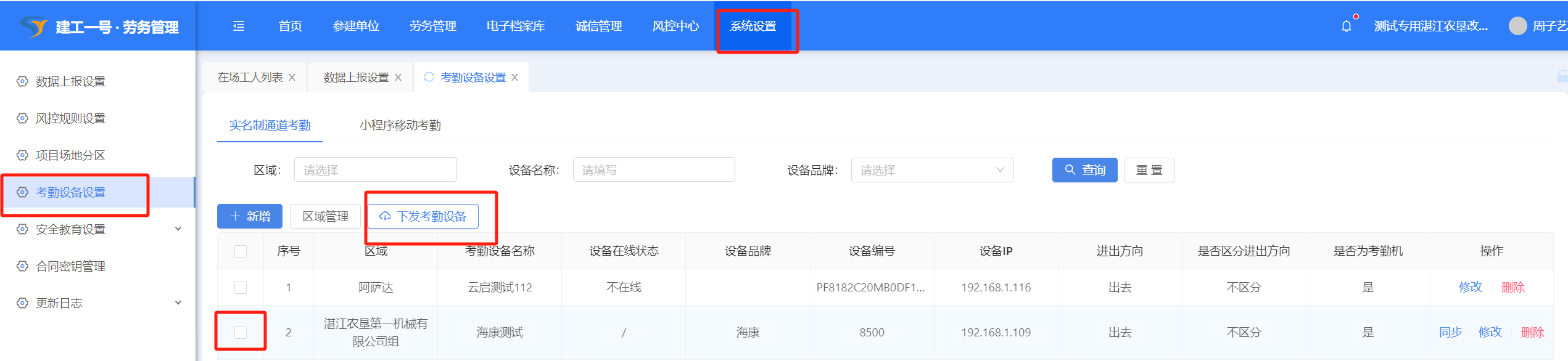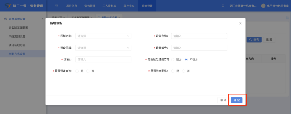 1.考勤设备设置-实名制通道考勤设置