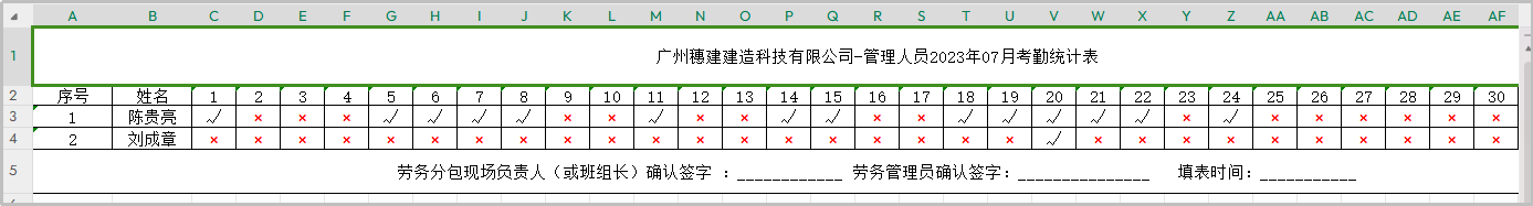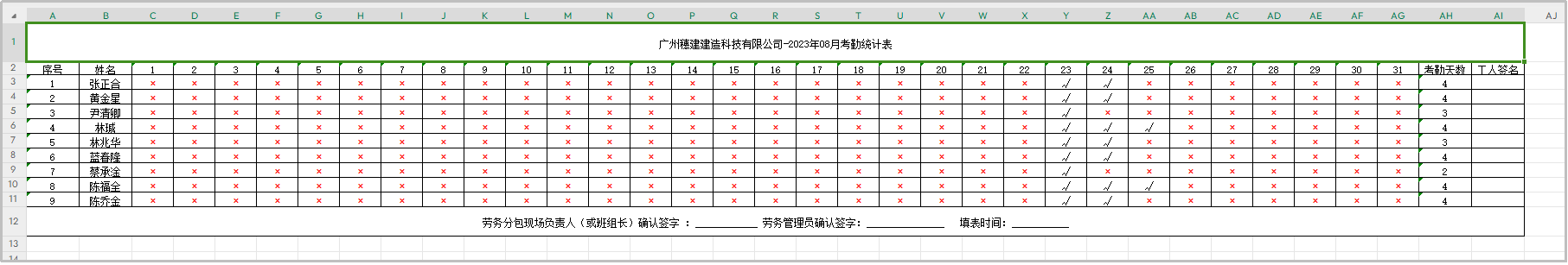 6.工人考勤统计表