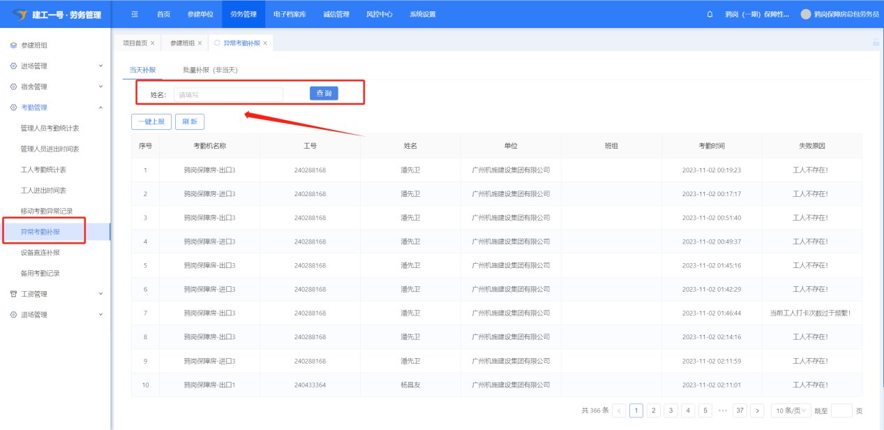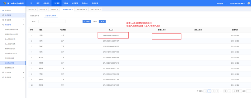 (6).该人员在实名制人员名单,没有重名的情况下,重新补报即可,如有重名,则把对应的id填写到“设备直连补报”的“填写建委staffId”中