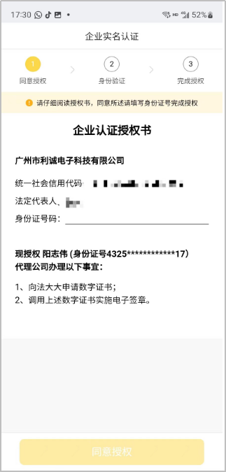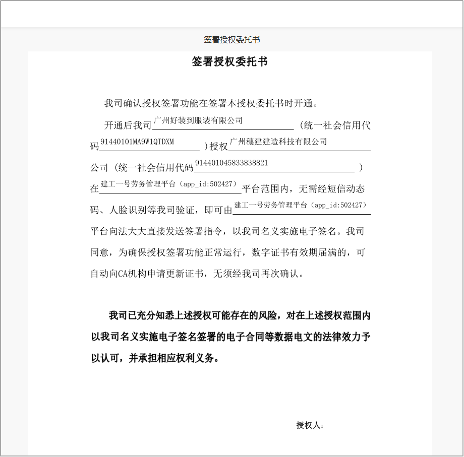 (2)授权签署协议及管理员人脸认证,企业公章在签署页右上角选择