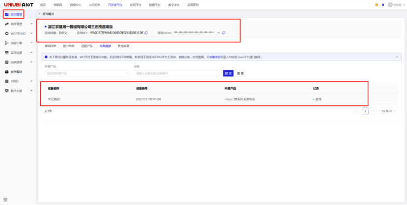 9.创建或者更新、删除设备后,设备会相应的更新到宇泛的设备管理中