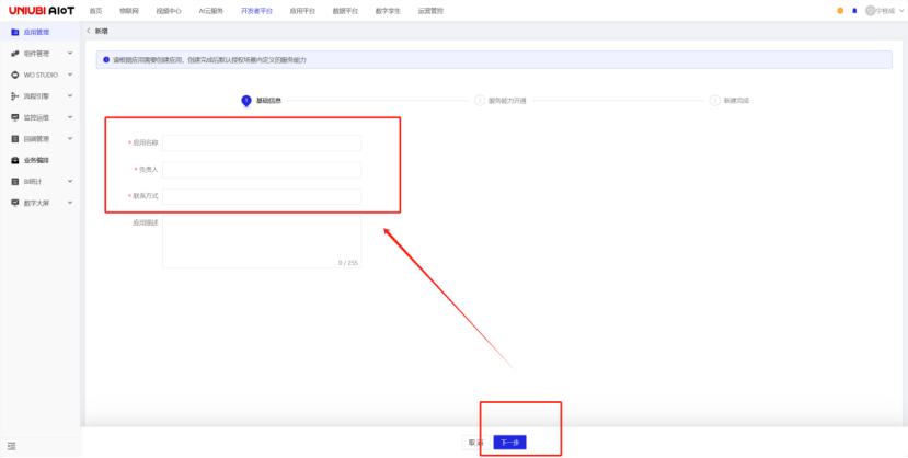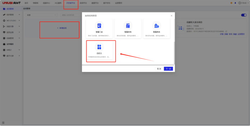 2.开发者平台–新增应用–自定义应用类型进入项目基础信息创建页面