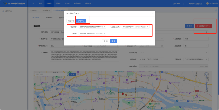 5.建工一号登录技术服务部账号–找到需要同步的项目–点击同步第三方平台