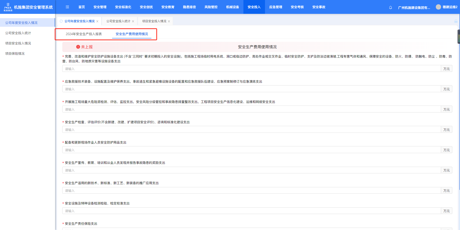 公司安全投入统计可通过筛选查看公司安全投入统计情况