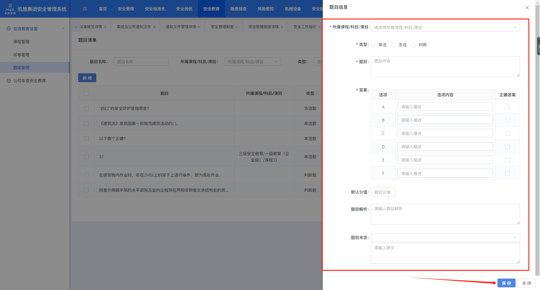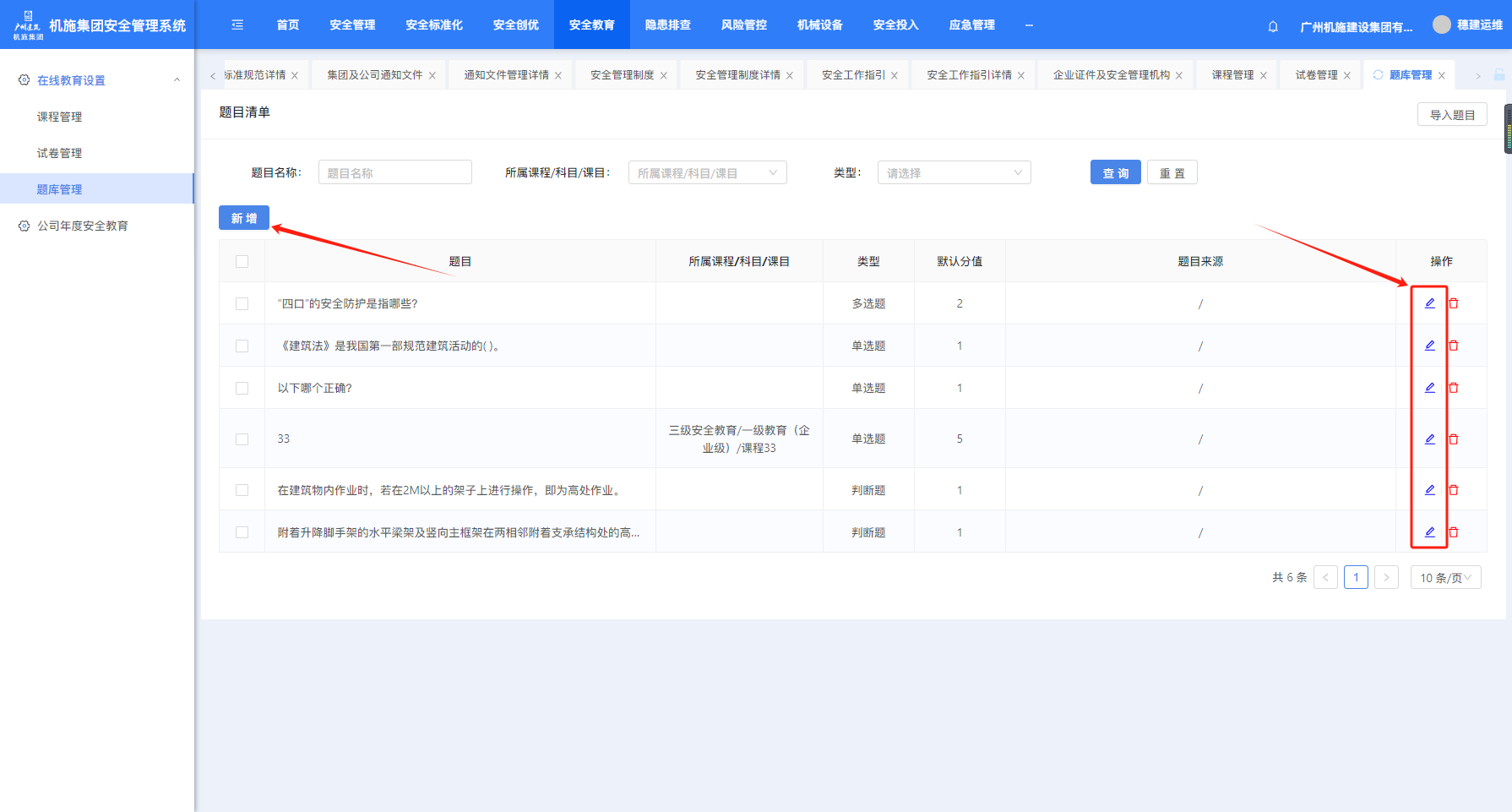 打开“在线教育”-“课题管理”页面,点击“新增”创建课题,“编辑”可对已创建的课题进行编辑。