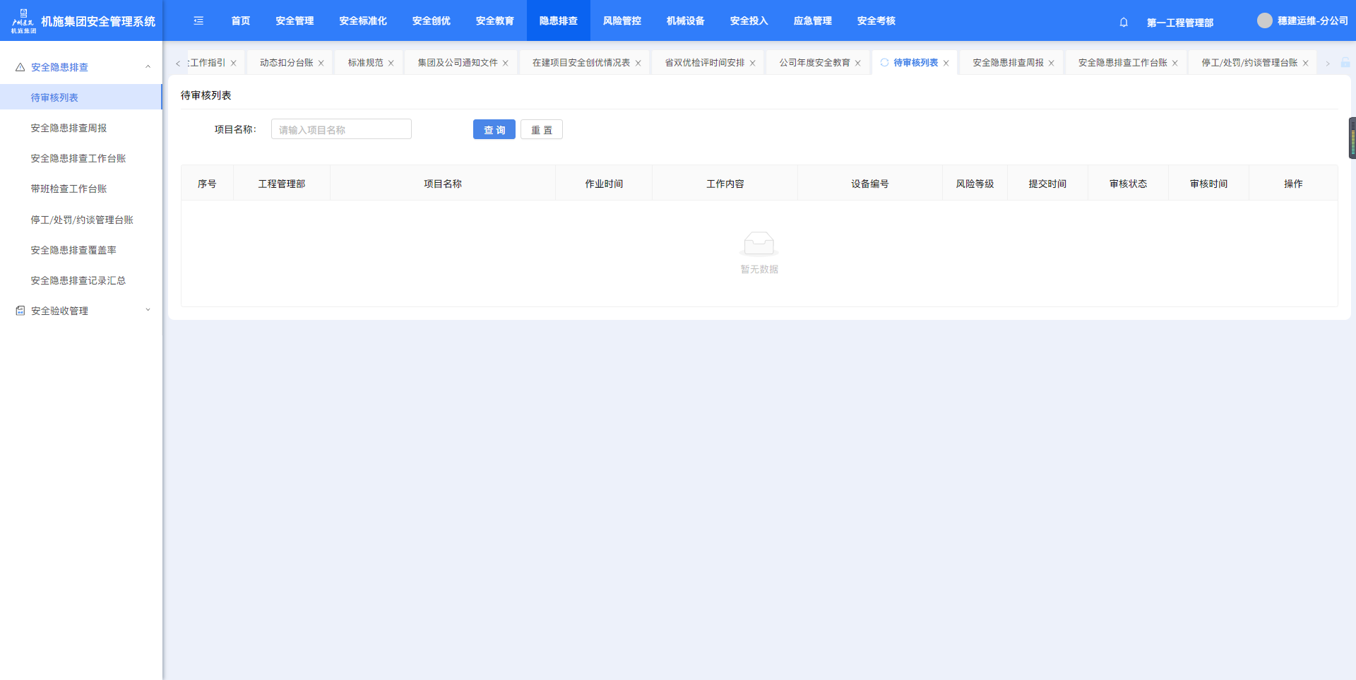“隐患排查”-“待审核列表”。