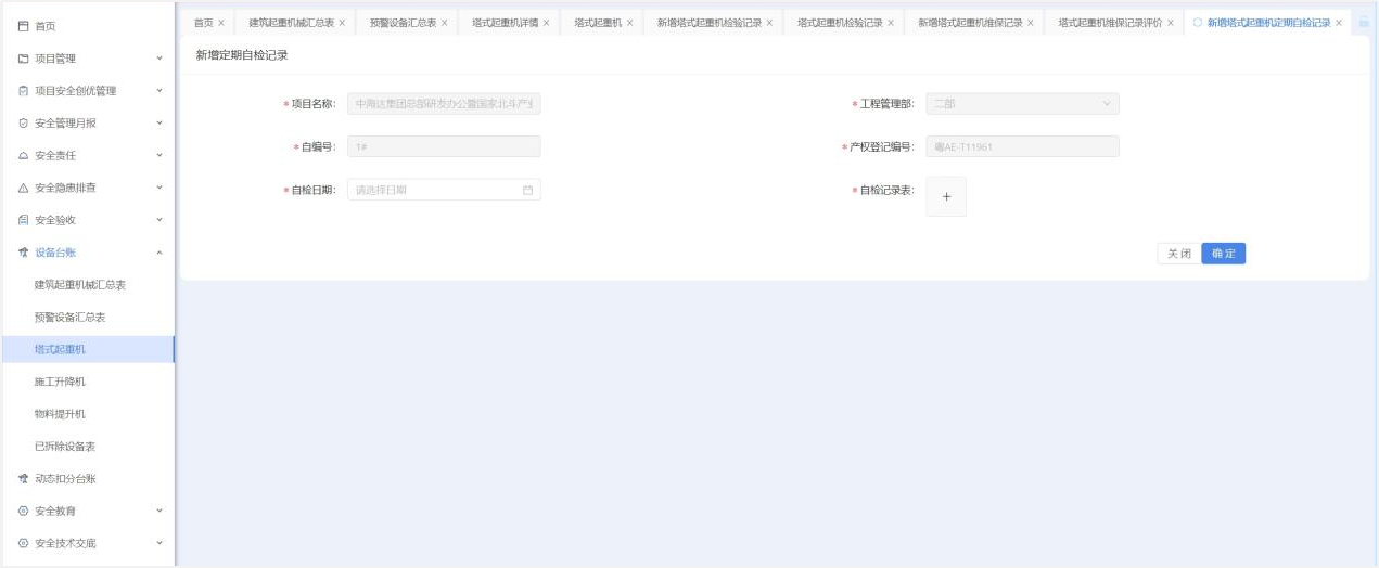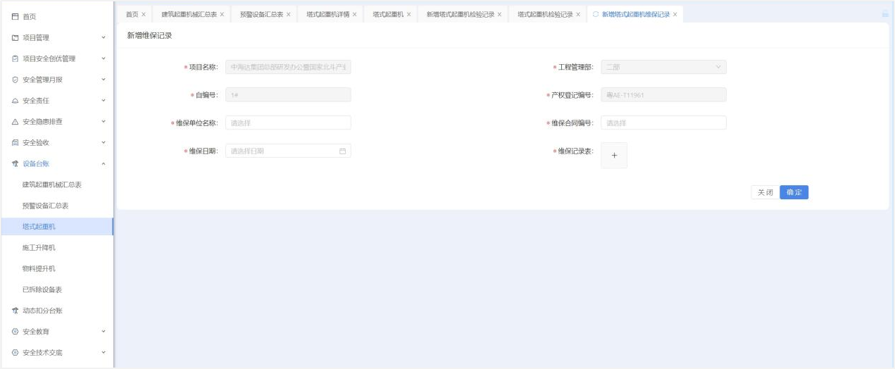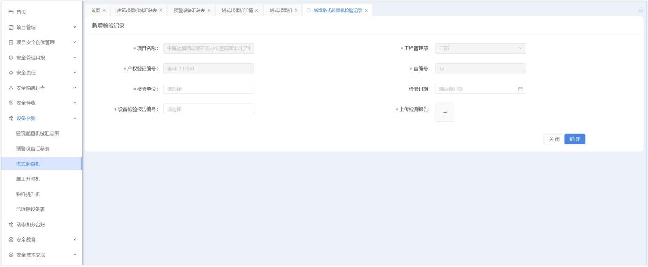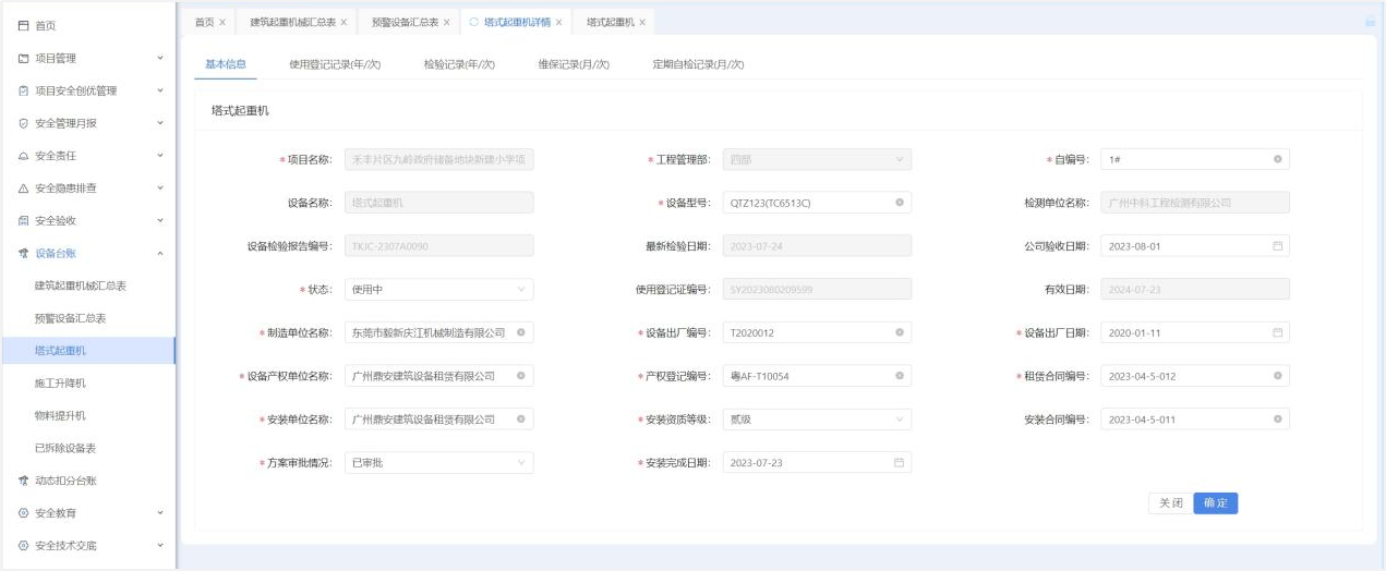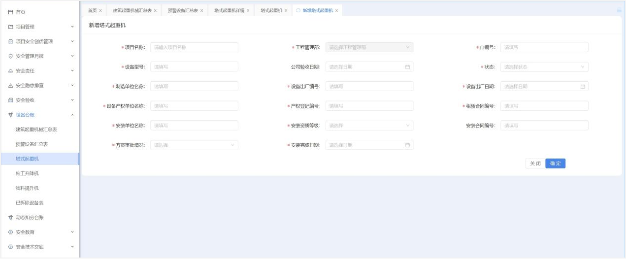 点击【新增】进入塔式起重机新增页面,点击确定新增。