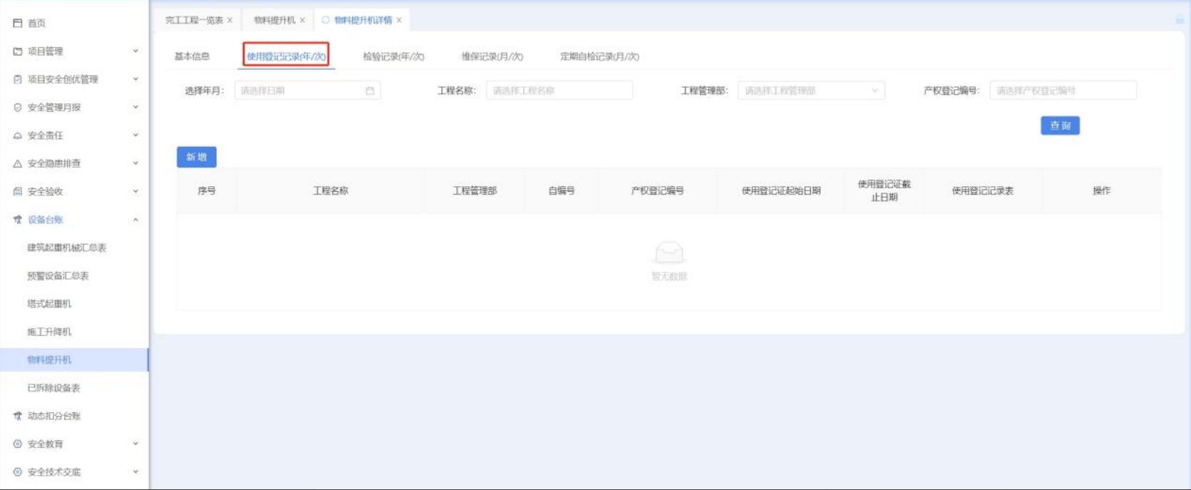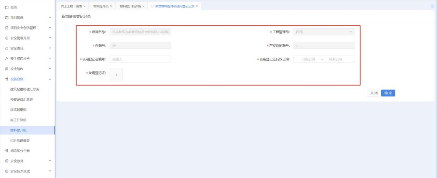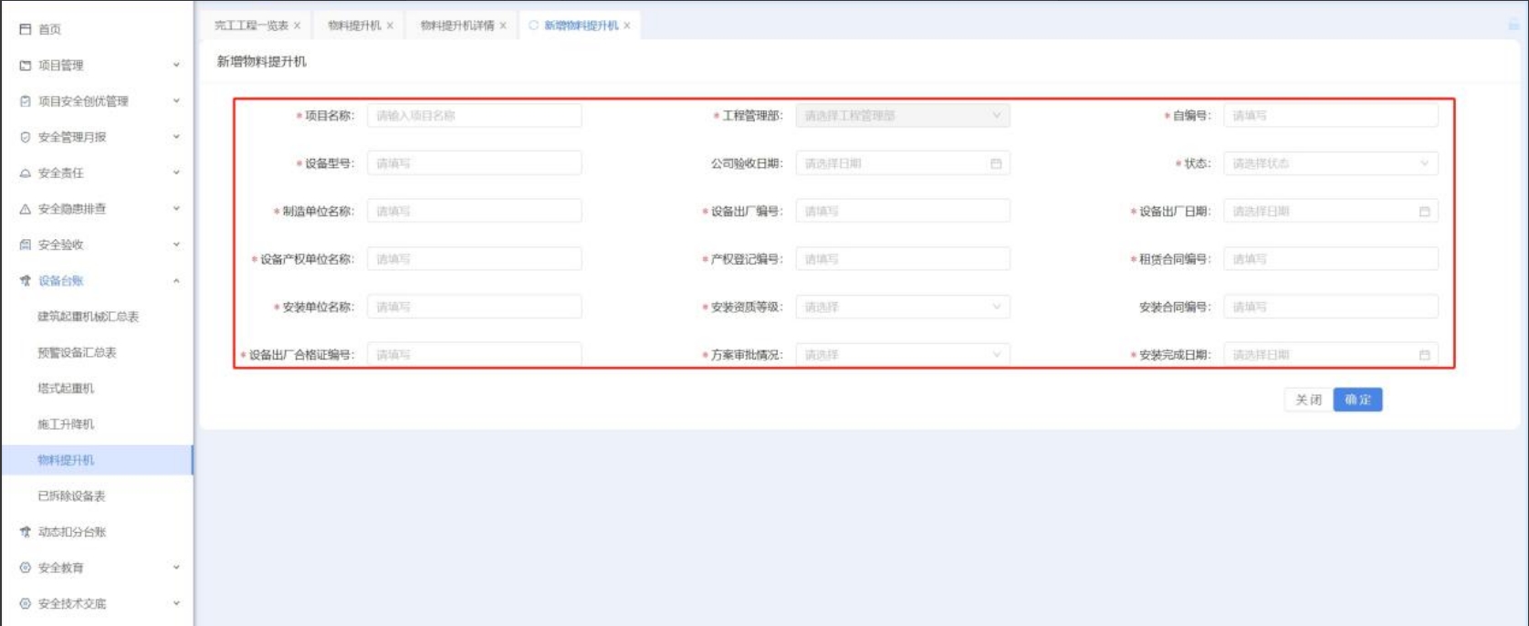 点击【新增】进入物料提升机新增页面,点击确定新增。