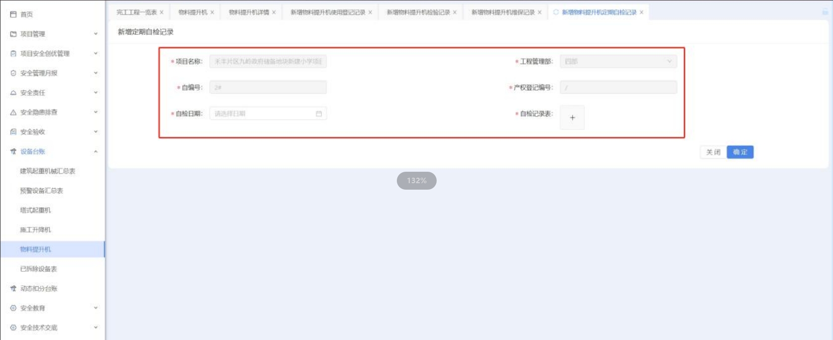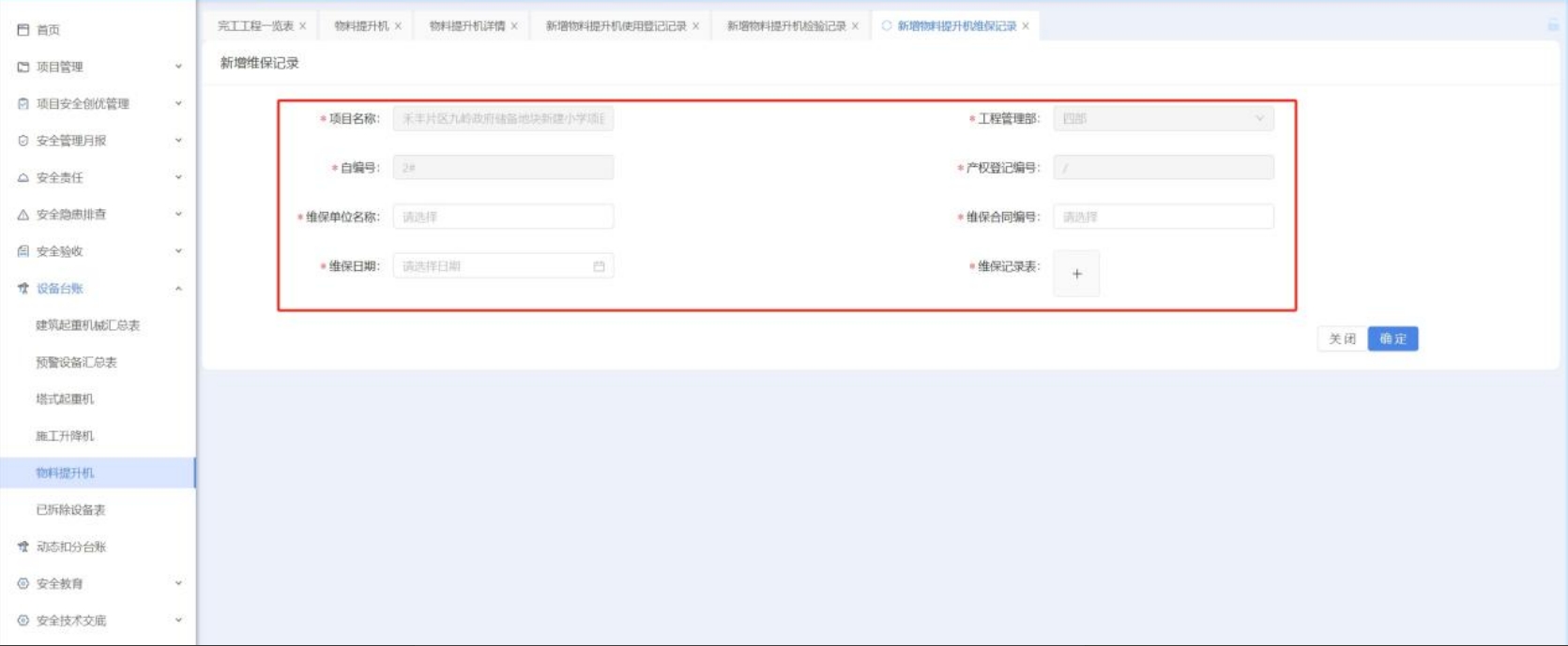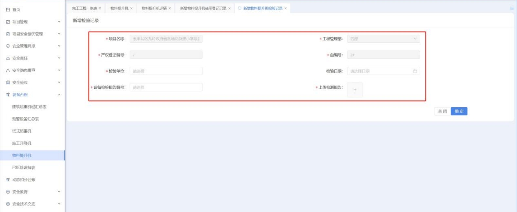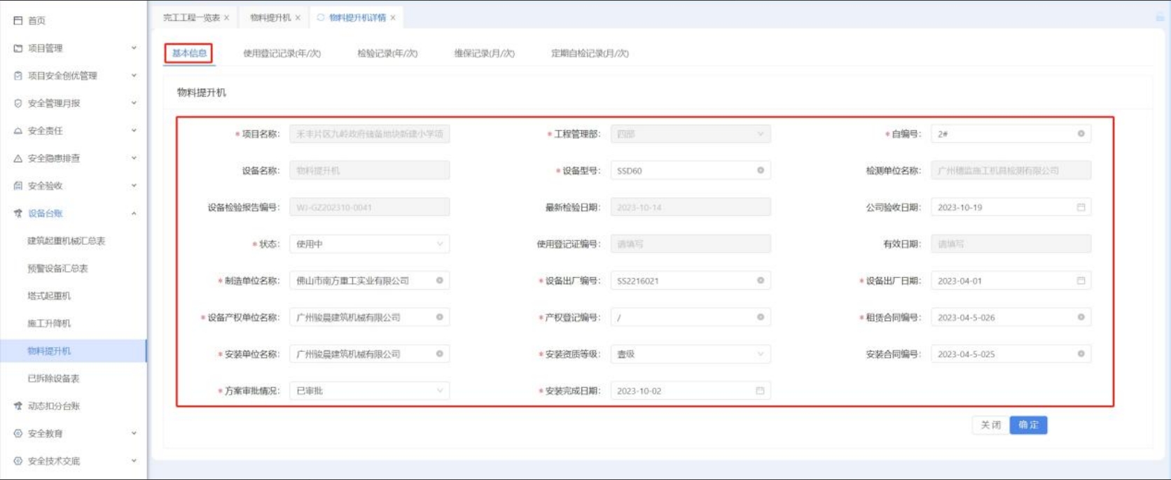 点击【新增】进入物料提升机新增页面,点击确定新增。