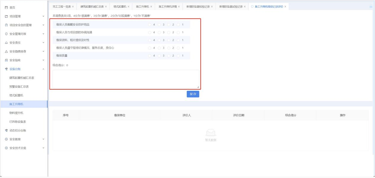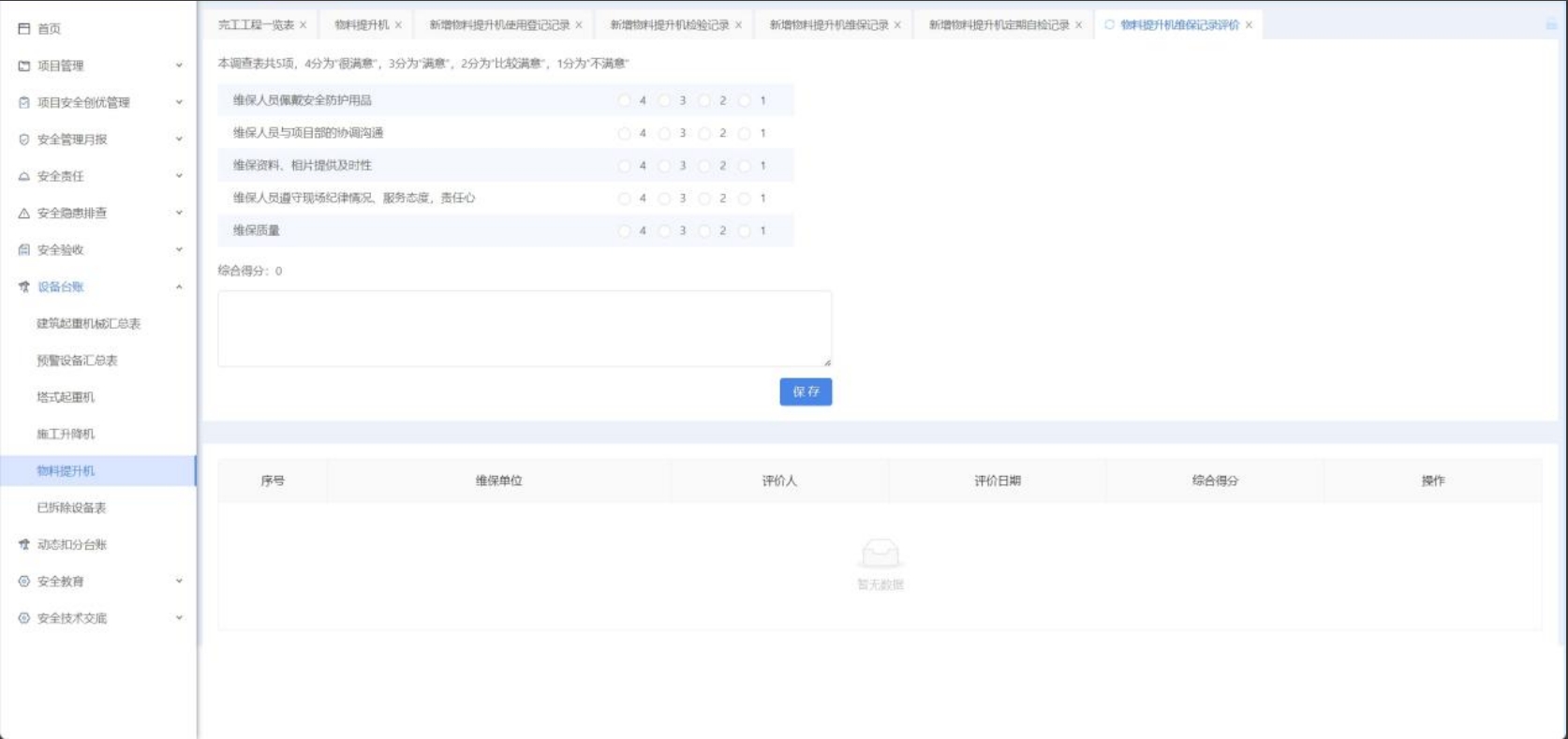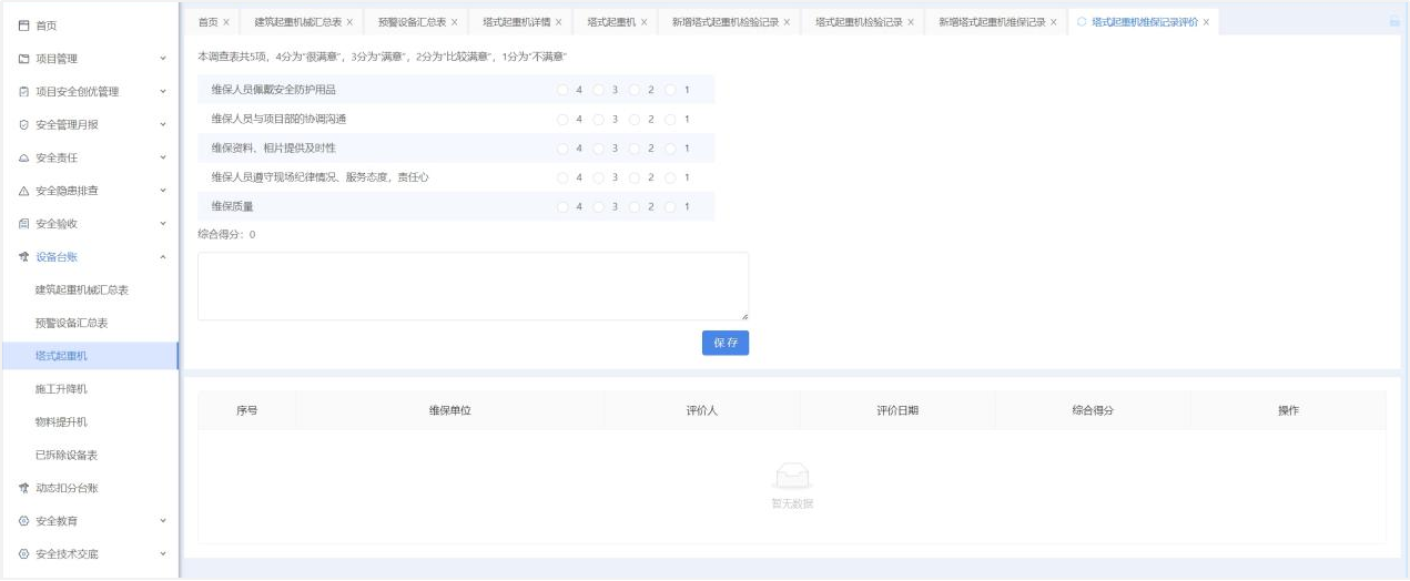 点击【评价】进入维保评价页面,可对维保单位评价和查看评价。