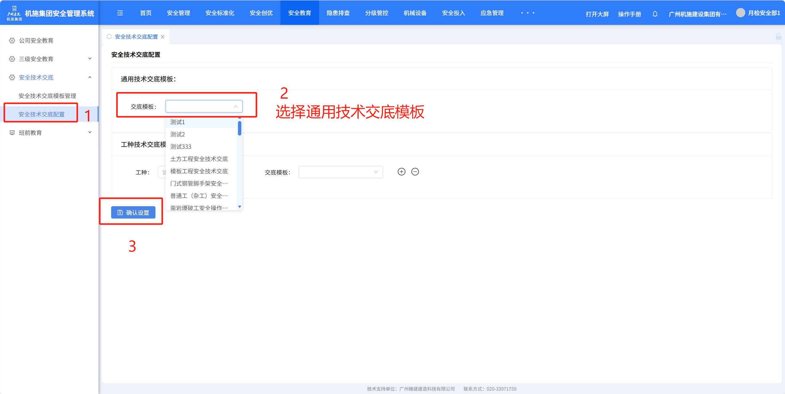(1)公司安全部账号配置通用工种的交底模板(若工人进场选择的工种没有对应的技术交底模板,此时启用通用交底模板)